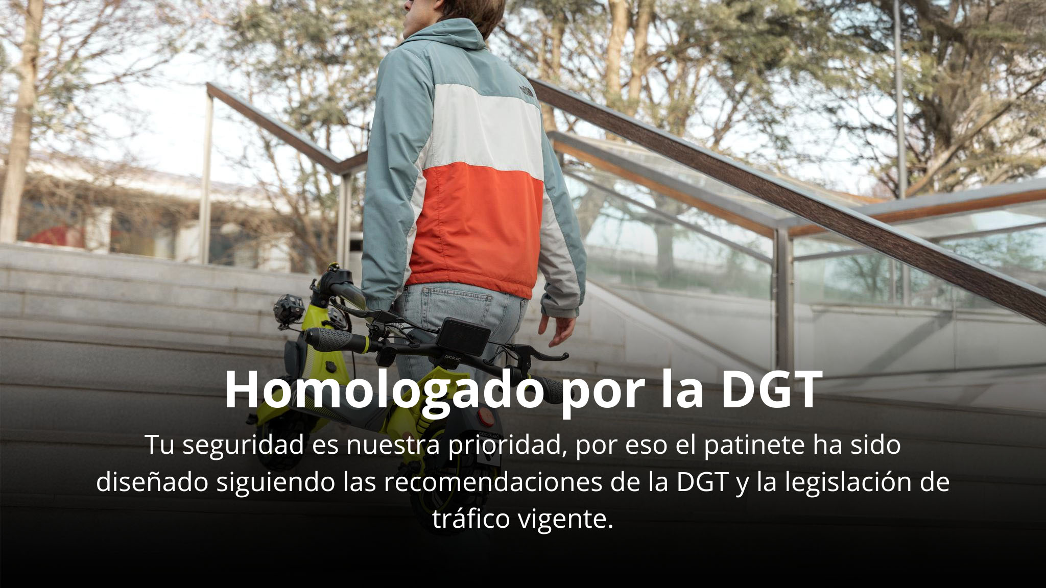 - Homologado por la DGT española. Cumple todos los requisitos del nuevo código de circulación español, garantizando que tu patinete esté siempre conforme a la ley y listo para usar.