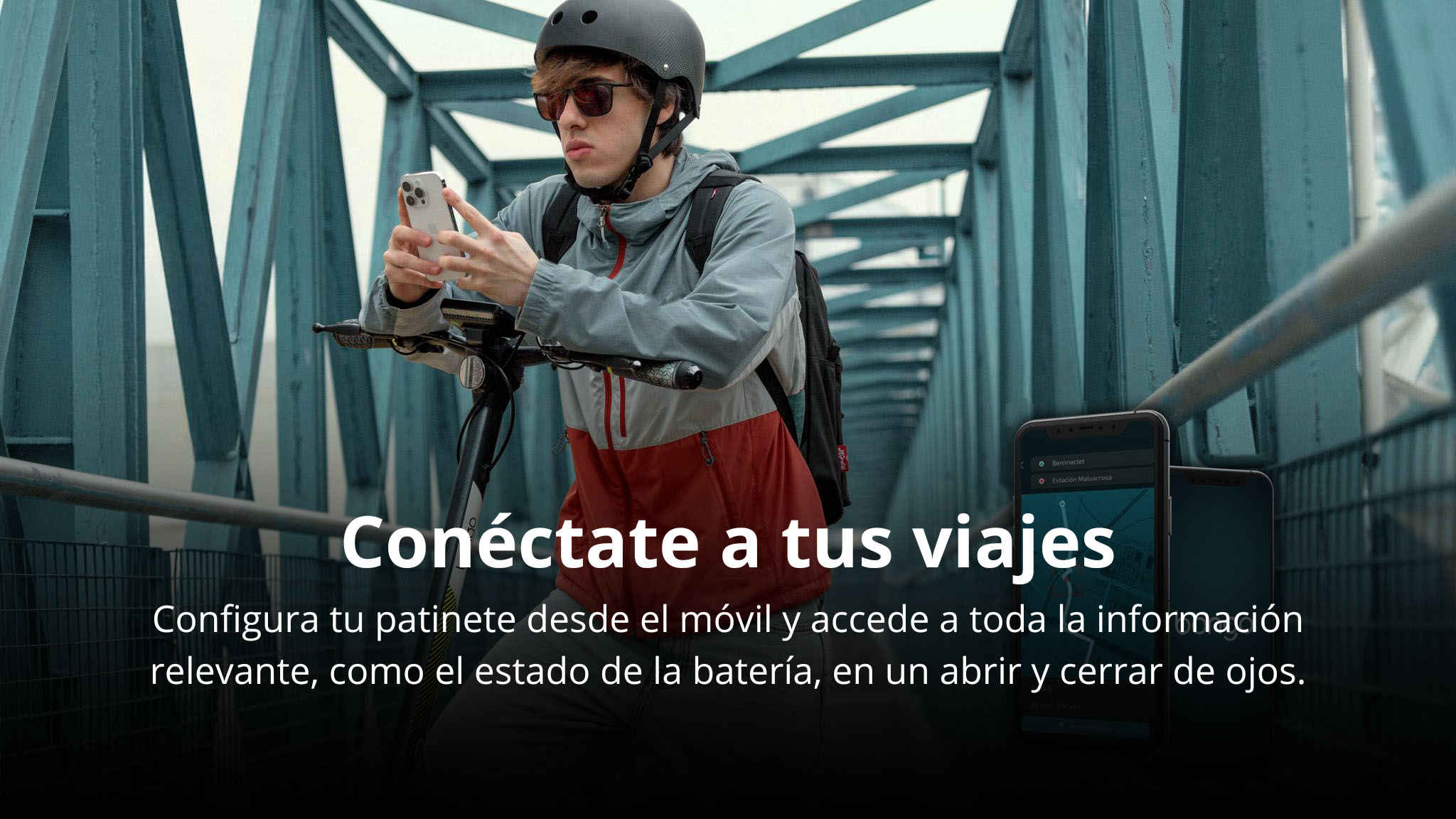 - Conectividad inteligente con tu smartphone. Configura y personaliza fácilmente tu patinete desde la app de tu smartphone. Incluye funciones avanzadas como detección de caídas y diagnóstico, con 2 años de uso gratuito de la aplicación.