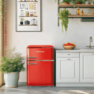- Tirador cromado: dale un toque de diseño retro a tu cocina con el resistente tirador cromado del frigorífico.